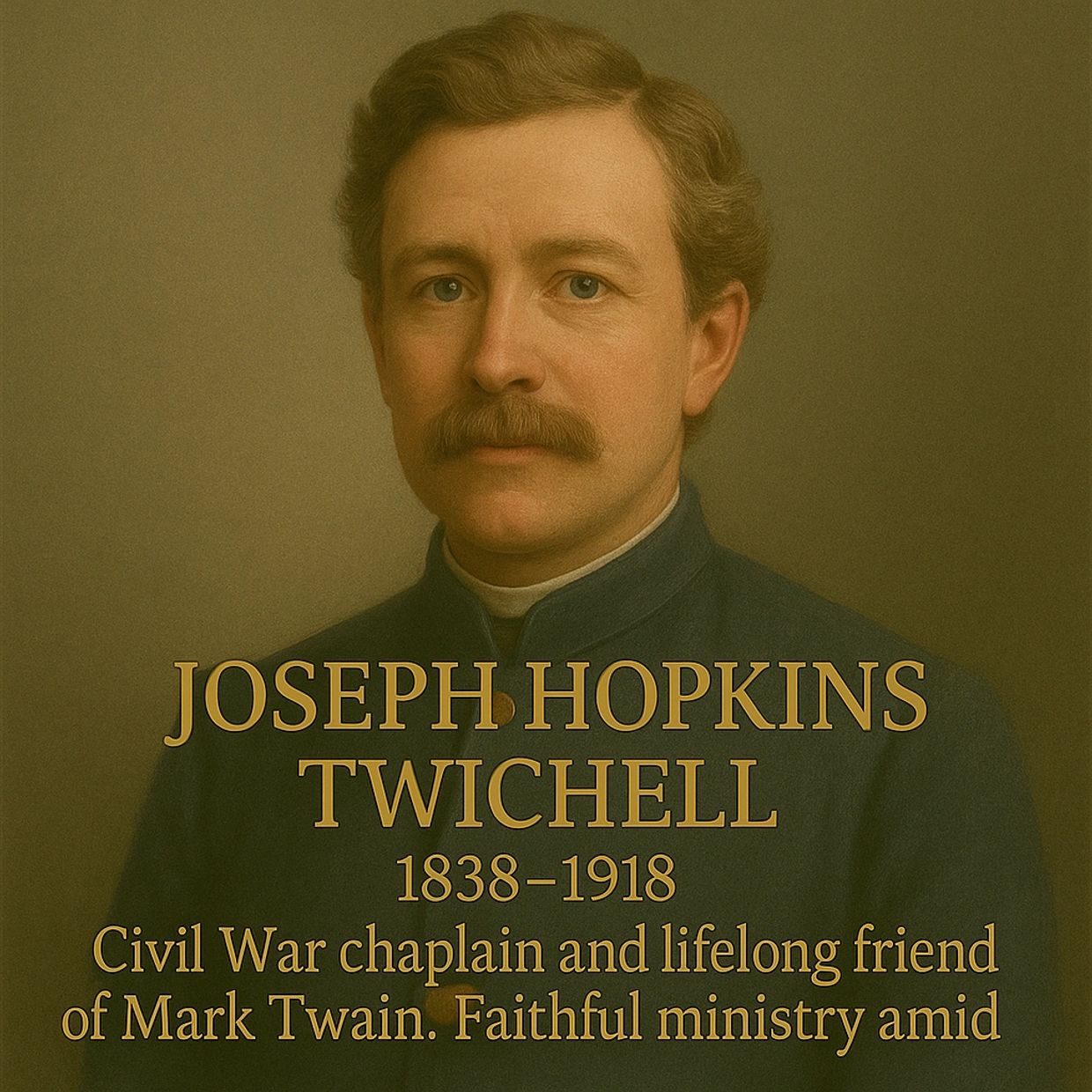 Joseph Hopkins Twichell (1838–1918) was a Civil War chaplain and lifelong friend of the renowned author Mark Twain. Known for his faithful ministry amid the hardships of war, Twichell provided spiritual care and comfort to soldiers on the front lines. His steadfast faith and compassionate heart made him a beloved figure among troops and civilians alike. Beyond the battlefield, Twichell’s enduring friendship with Twain influenced both men’s lives profoundly, blending faith, literature, and deep human understanding.